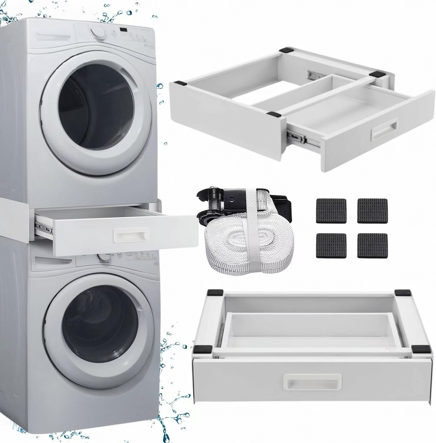 Washing Machine Stacking Kit with Drawer Connecting Frame for Washing Machine/Dryer with Rope